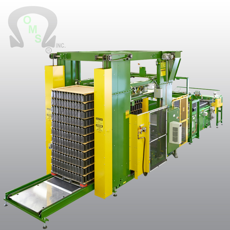 Production Line Level Discharge Bulk – The OMS Production Line Level Bulk Depalletizers, Model Series 500, 600, 700, 800 and 900 are offered semi-automatic to fully automatic.
